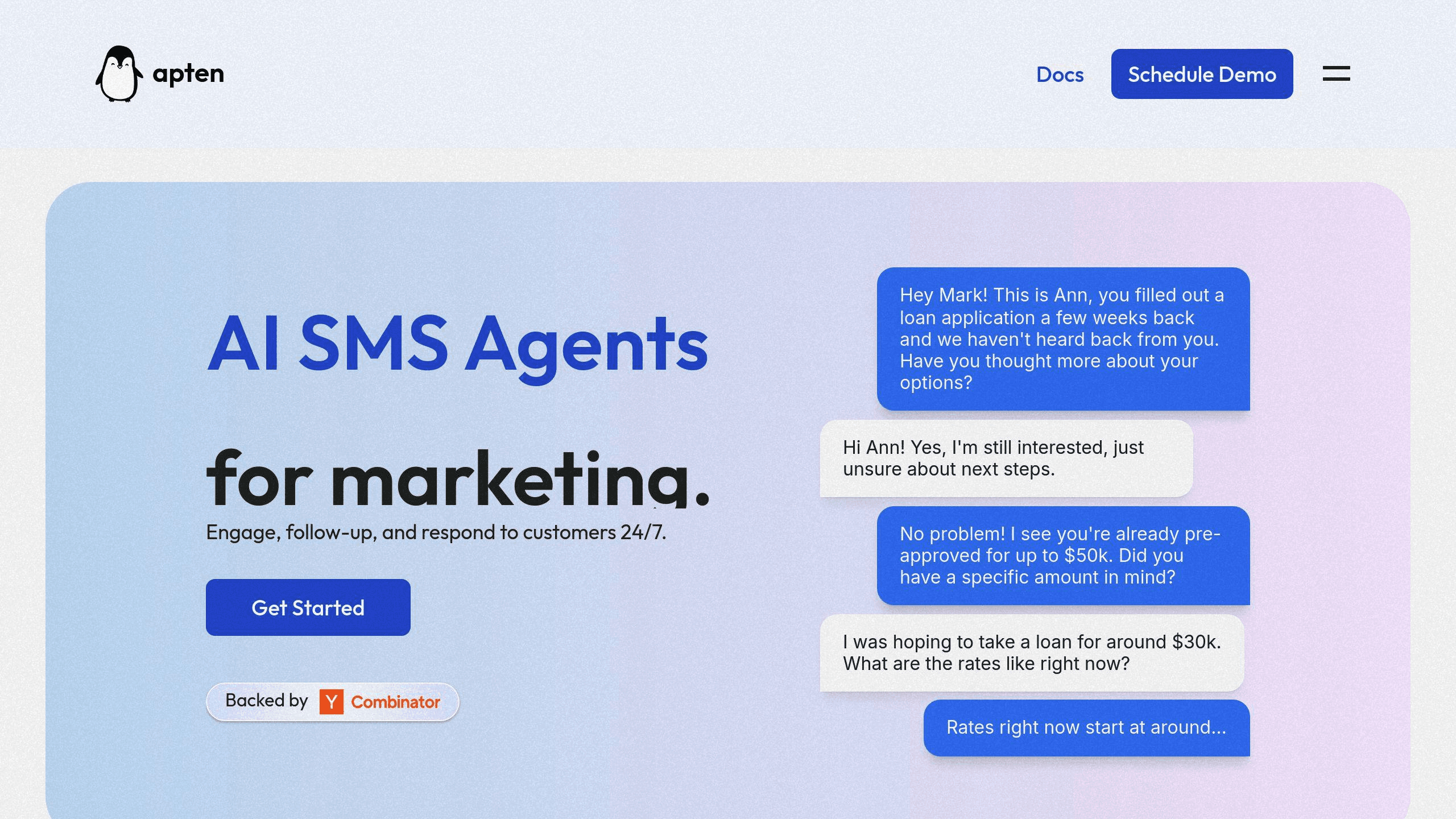 Apten is a powerful tool for automating SMS lead qualification. Its AI-driven agents are available 24/7, engaging leads through tailored conversations. Here’s what it offers: